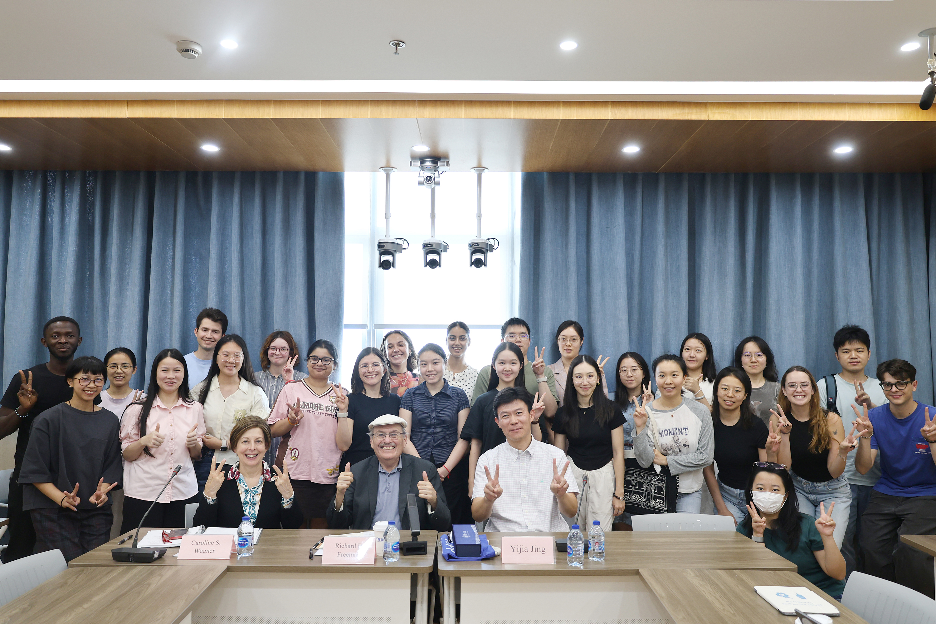 在互动问答环节,学生们围绕“信息技术变革带来的虚假信息影响”、“如何在循证框架下平衡质性研究中的人类情感与经验”、“在全球背景下如何解决基础研究供给不足的问题”等话题向Freeman教授提问。Freeman教授指出,培育对客观事实有强烈需求的受众,可能是应对虚假信息的关键途径;在人类情感经验被纳入考量的情况下,经济利益往往会凌驾于循证建议之上;同时,他还从经济学角度解释了美国政府近年来减少基础科学投资的逻辑,并提出由各国共同出资开展公共研究的设想。