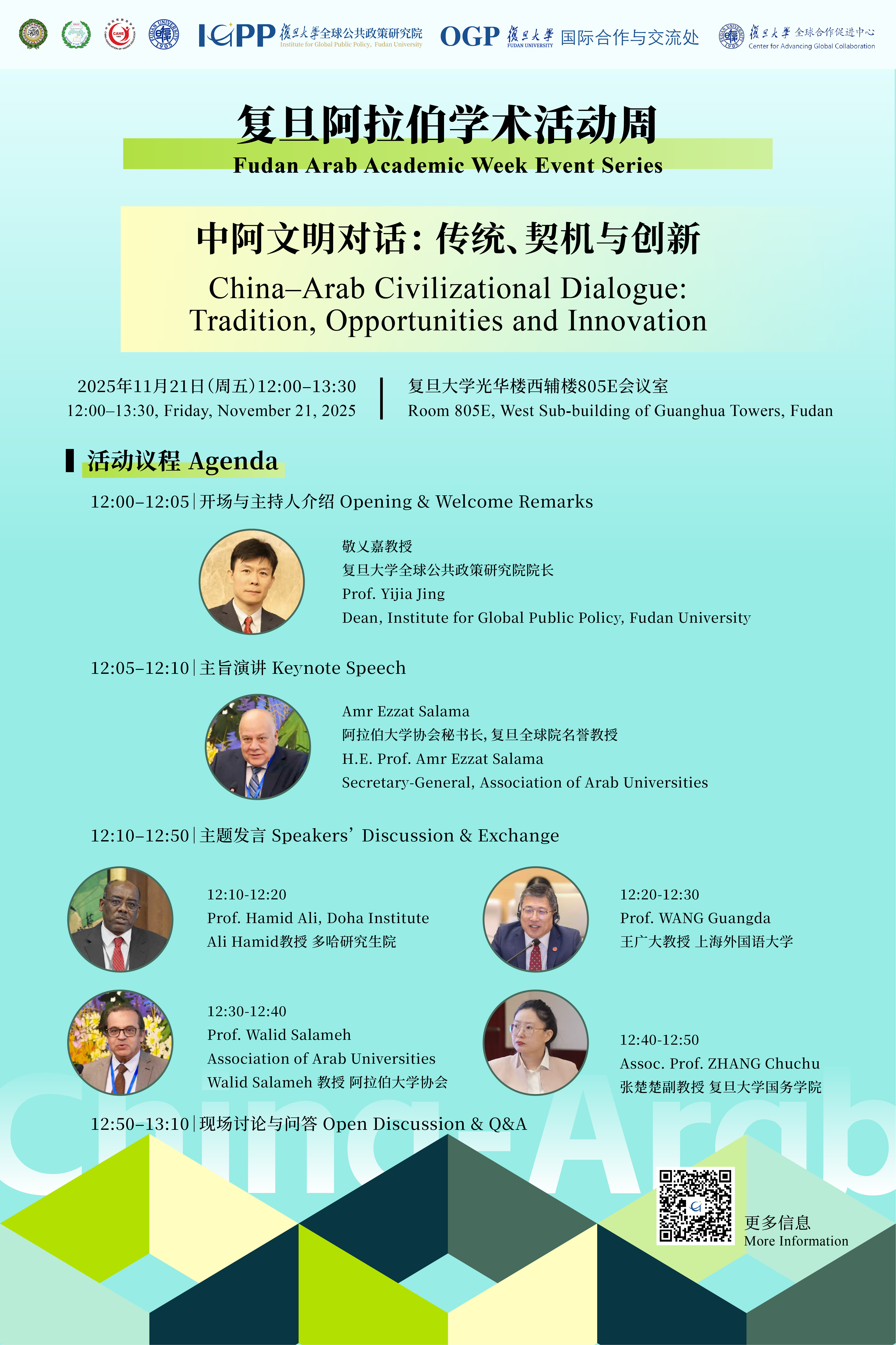 “中阿文明对话:传统、契机与创新”旨在搭建一个面向未来的交流平台,邀请来自中阿双方的专家学者与青年代表,围绕文明传统、合作机遇与创新发展等议题进行分享与讨论。