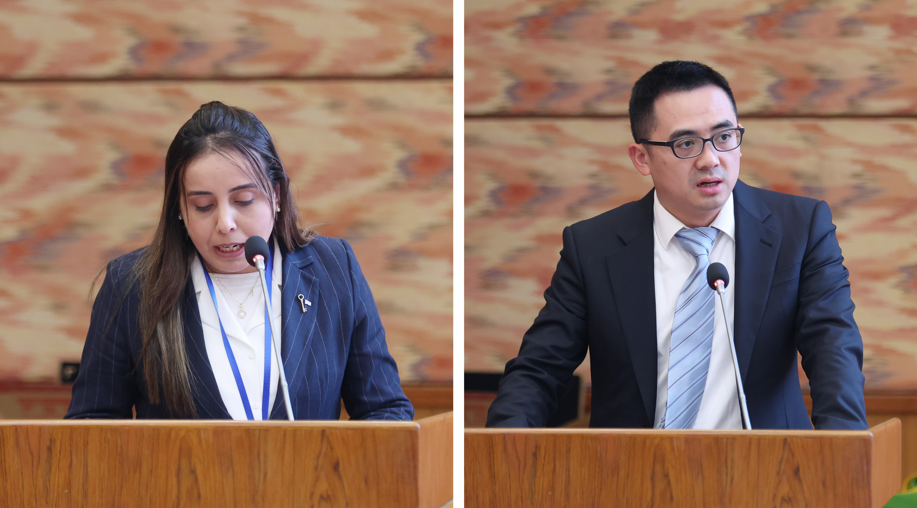 峰会核心环节,中阿青年代表根据小组讨论的成果,围绕全球治理、中阿关系、数字丝路、青年成长四大主题展开汇报。在全球治理议题上,来自伊拉克驻开罗阿盟常驻代表团的Waeil Naseer AL Azzawi和国际组织工作人员李若愚作为小组代表发言,倡导坚持以多边主义为基石的全球治理框架,呼吁中阿青年凝聚共识,携手推动各国在绿色经济转型领域深化技术与经验共享,同时强化人道主义援助的区域协同响应机制,以包容、务实的合作模式共克全球性发展难题。