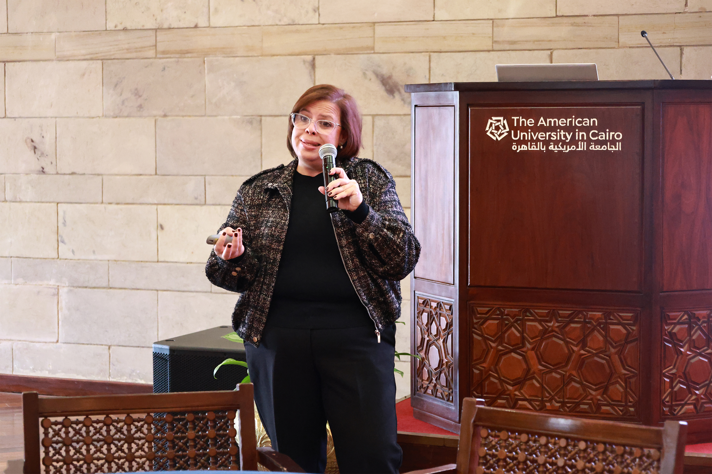 开幕式上,开罗美国大学全球事务与公共政策学院院长Noha El-Mikawy致欢迎辞。她向中埃师生表示欢迎,并介绍了学院在公共政策、全球事务及南南合作领域的教学与研究情况,鼓励学生结合自身学习与实践经验参与交流,在讨论中主动提问、开展批判性思考,通过多元视角的互动加深相互理解。