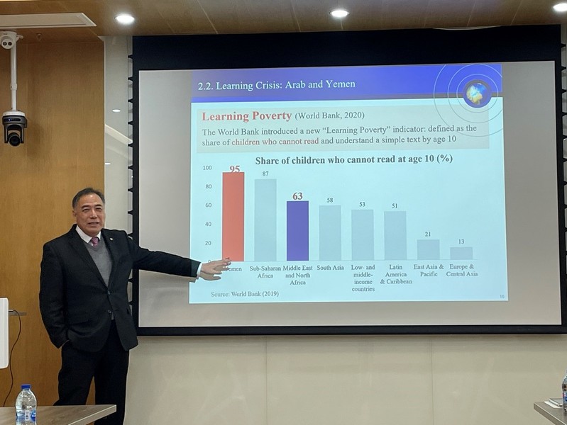 As an expert of the United Nations Educational, Scientific and Cultural Organization (UNESCO), Professor Ogawa first reviewed the phased goals and achievements of the United Nations since the last century. Particularly, he emphasized the significant progress made in global human resource development and basic education levels since the 21st century under the guidance of the Millennium Development Goals (MDGs) and the Sustainable Development Goals (SDGs). However, Yemen, which has been affected by regional conflicts and political instability for a long time, has only achieved a basic education coverage rate of 66%, much lower than other countries in the Middle East and North Africa (90%). In this context, the Yemeni government has implemented multiple policies such as the Transitional Education Plan (TEP) to reduce the dropout rate and improve the education deficiency situation. International organizations such as the World Bank, UNICEF, and UNESCO have provided long-term assistance to Yemen in education funding, equipment resources, gender equality, and youth employment, and other dimensions.
